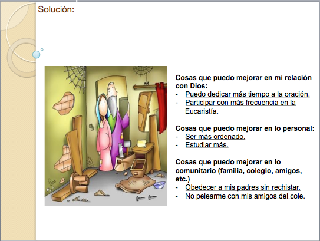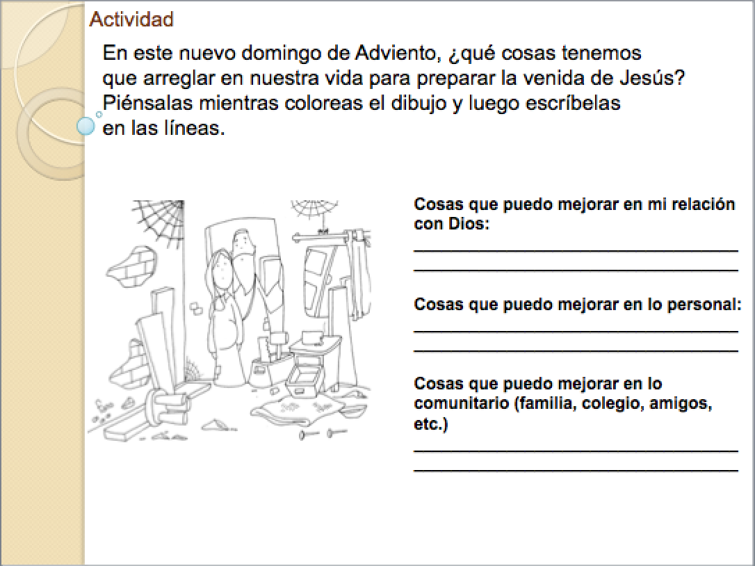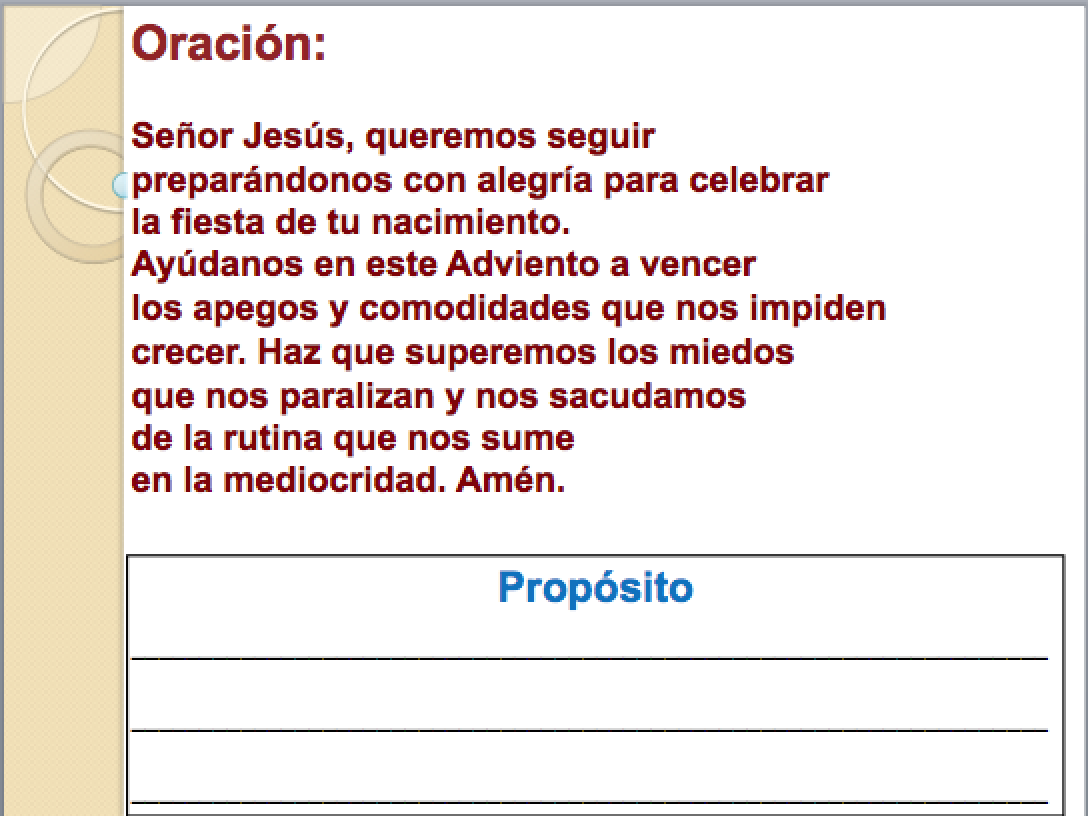 – “Cada vez que hacemos algo con amor, buscamos una pajita y la llevamos al pesebre. Así vamos preparando para que cuando llegue el niñito Jesús, María tenga un buen lugar para recostarlo. Si amamos poco, el colchón va a ser un colchón delgado y por lo mismo frío; pero si amamos mucho, Jesús va a estar más cómodo y calentito.”